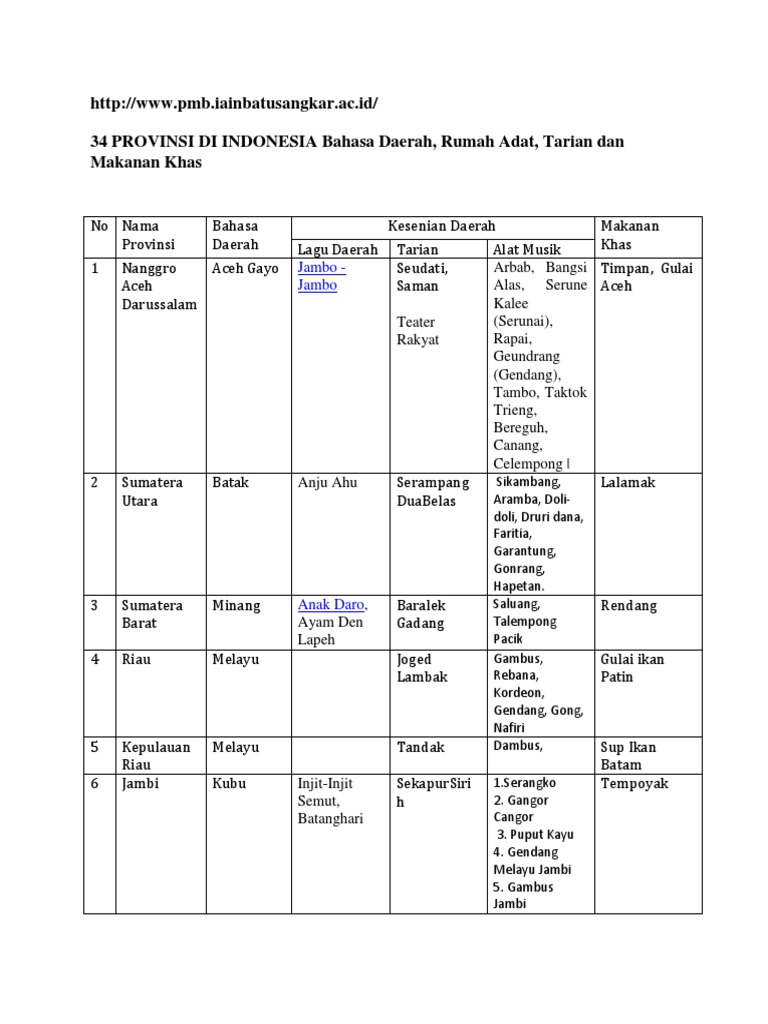 34 Provinsi Di Indonesia Bahasa Daerah